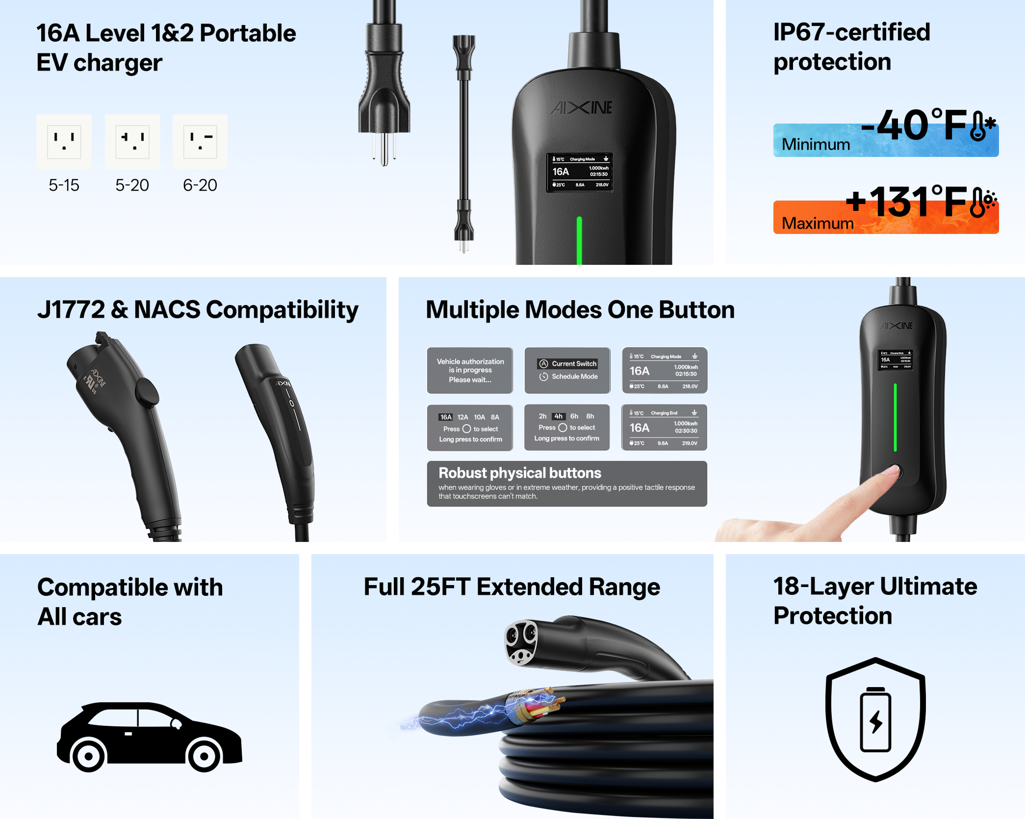 • Adjustable charging, up to 16A max current